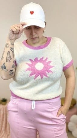 Pull manches courtes motif soleil (bleu,jaune,rose,orange)
